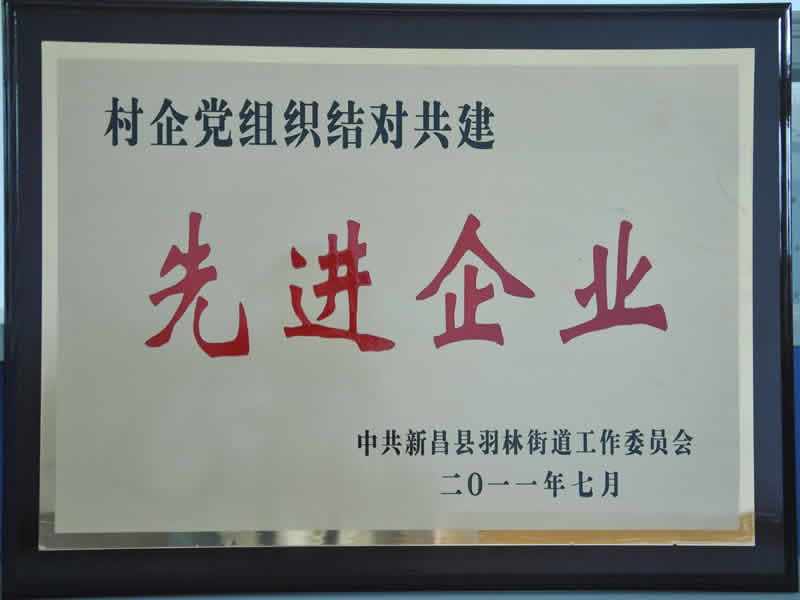 6月28日,,,,,,,建党90周年运动前夕,,,,,,,新昌县羽林街道组织开展评优表扬运动,,,,,,,会上对2010年在推进全街道刷新、生长、稳固中做出效果的10个先进党组织、12家先进村企党建共建企业,,,,,,,100名优异共产党员予以表扬。。。。。。公司荣膺先进村企党建共建企业,,,,,,,清静生产管理部黄玉峰和研发中心陈见阳被评为优异共产党员。。。。。。