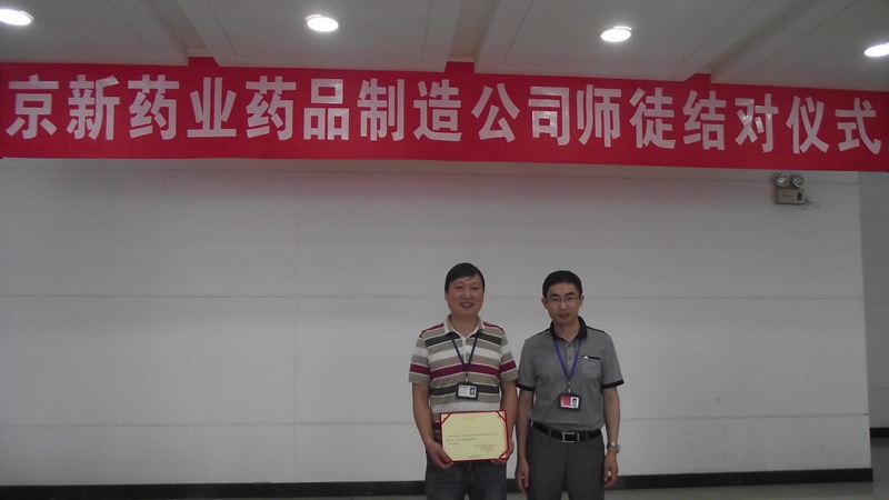结对仪式上,,,,,,药品制造公司总司理陈绍碧向被聘为车间各个岗位的师傅揭晓聘用证书,,,,,,并向通过审核的师傅授予津贴奖。。。。。。新员们逐一上台宣读誓言,,,,,,表达了自己虚心讨教、永求上进的刻意。。。。。。