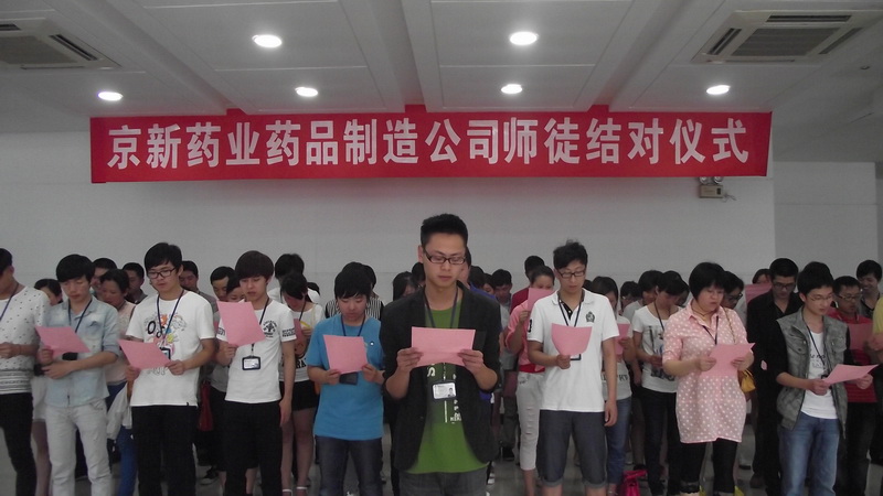 5月30日下昼,,,,,,药品制造公司在公司食堂举行了师徒结对仪式,,,,,,药品制造公司总司理陈绍碧、副总司理李必祥、各部分认真人、全体受聘师傅和新进员工出席仪式运动,,,,,,仪式由综合办主任石萍主持。。。。。。